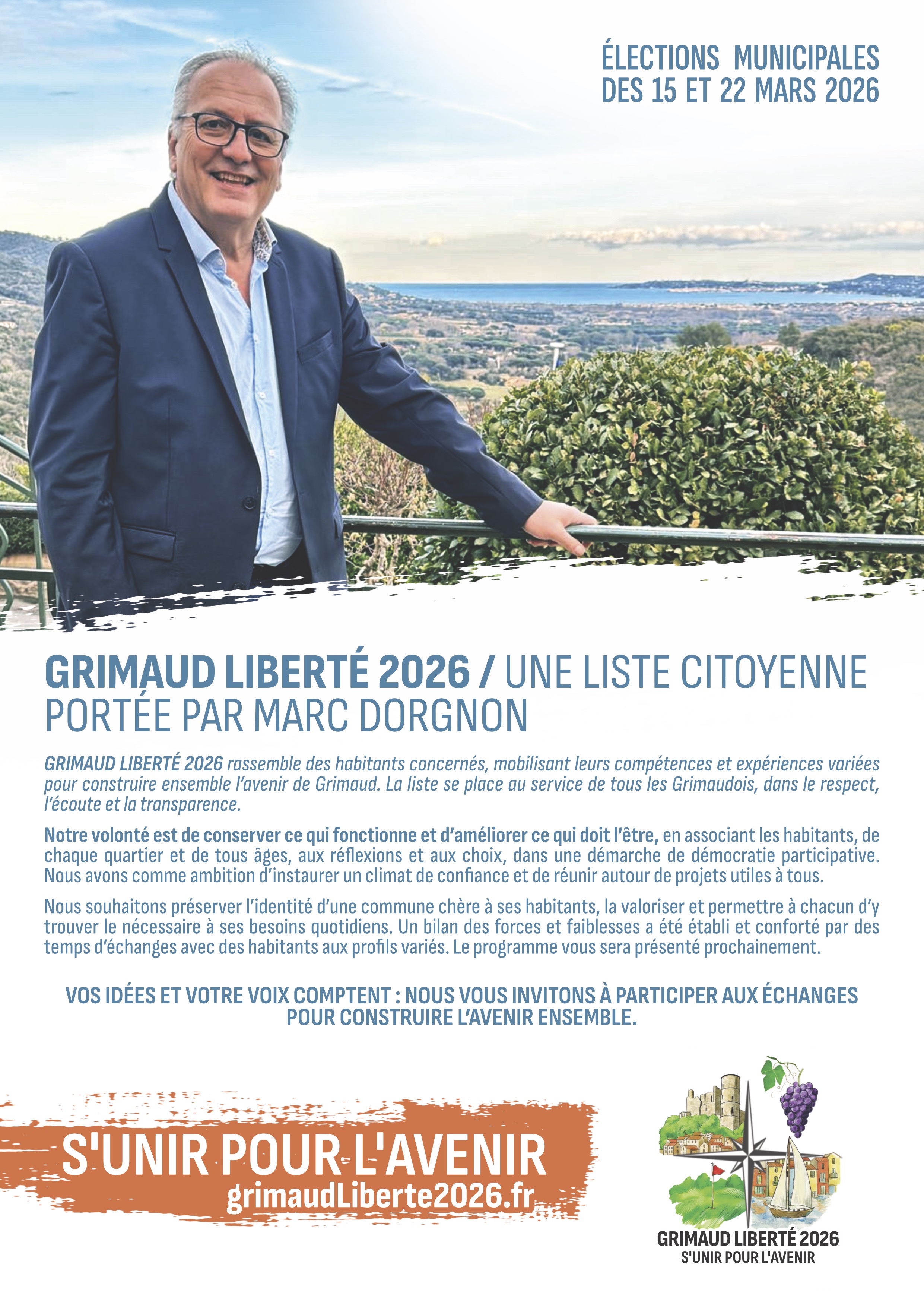 La liste Grimaud Liberté 2026 annonce sa participation aux élections municipales de mars 2026 et présente Marc Dorgnon comme tête de liste.