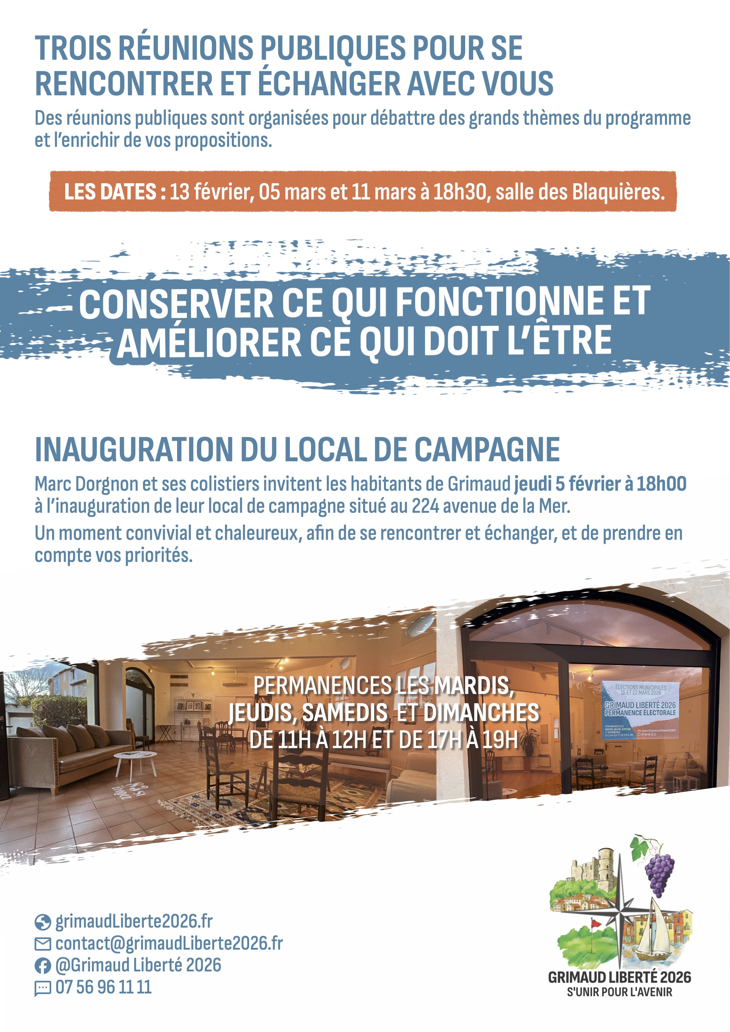 Liste citoyenne, Grimaud Liberté 2026 rassemble des habitants de Grimaud, présents sur la commune depuis de nombreuses années, aux compétences complémentaires, avec une volonté claire : être au service de tous les Grimaudois et de tous les secteurs, dans le respect, l’écoute et la transparence.